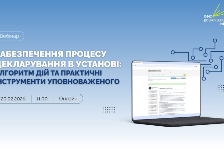 Відео Забезпечення процесу декларування в установі: алгоритм дій та практичні інструменти уповноваженого 17 Лютого, 2026