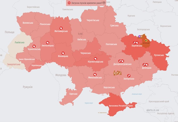 За даними моніторингових каналів, ракети у повітряному просторі України очікуються протягом години.